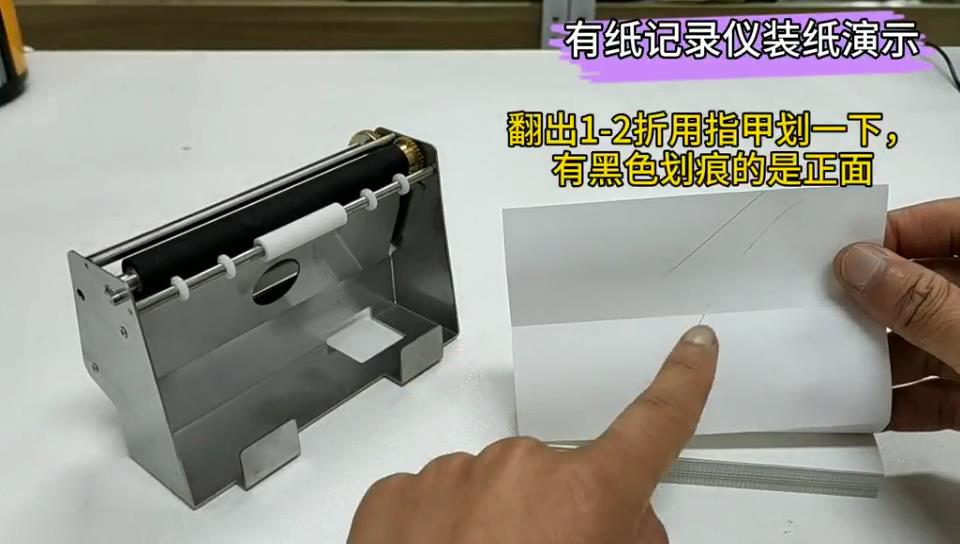 2、确定正面:将记录纸打开2-3折,指甲轻划纸面,有黑色痕迹的为正面。